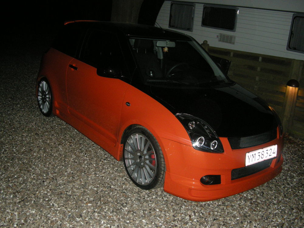 Beskrivelse: Nye billeder af swiften, efter den blev lakeret 2 farvet, fik komplet læderkabine, nye mørke lygter hele vejen rundt, samt nye 18" OZ Superturismo