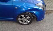 Du er da godt nok også uheldig! Det skulle vel ikke have været en Rød Swift GLX du påkørte? Der er nemlig én som har ramt min højre bagskærm, men er kørt videre!
