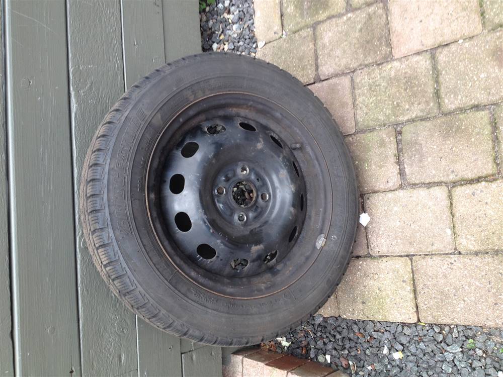 4, 15" stålfælge med bridgestone (gode) vinterdæk, har siddet på en swift, krydsmål 10 cm. pris ide: 800kr.