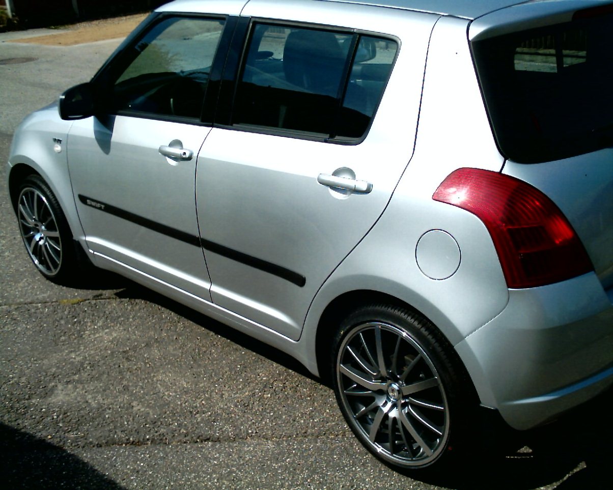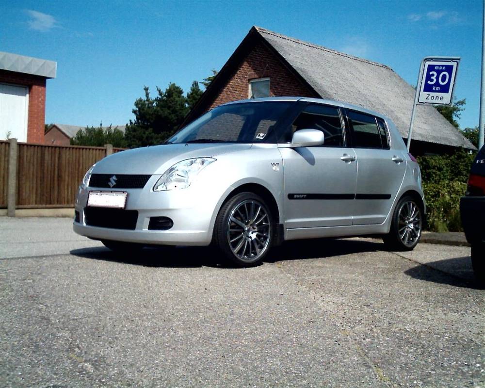 så fik jeg købt fælge ved t hansen 17" avus / srt med nakang dæk 195 /40 ET 40 sjovt nok giver t hansen kun pasnings garanti til en 1.5 swift men min er så også en 1.5 men jeg tror nu ikke på der er nogen forskel på en 1.3 og 1.5 model