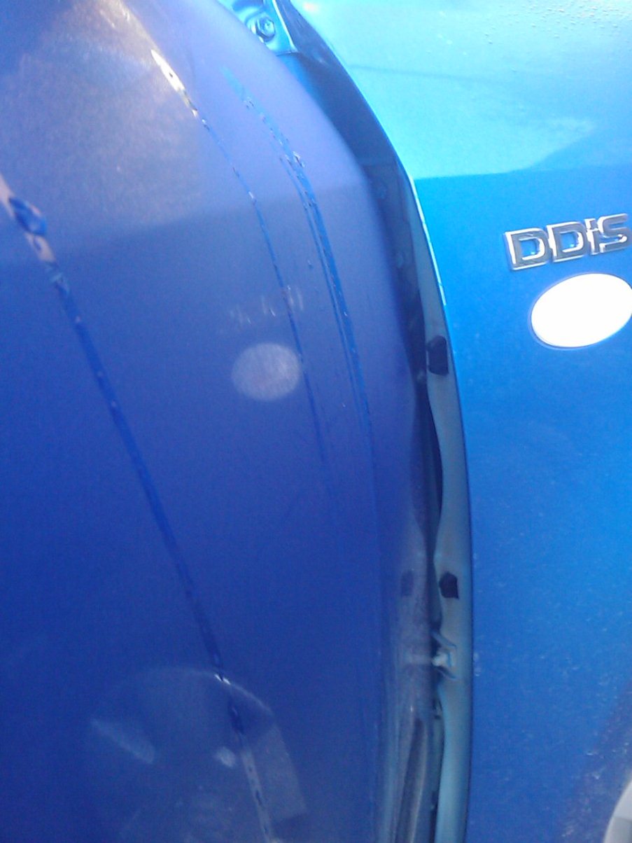 Har ”lagt” lidt fotos med som viser den manglende lak mellem dør og forskærm i begge sider